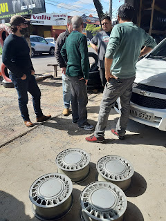 Eu e o Dione fomos na frente, para confirmar a disponibilidade das rodas anunciadas por André. Em conversa com o anunciante fui informado que as rodas já tinham sido vendidas. Convenci ele a ligar para o comprador, pedindo que retornasse, informando que as rodas tinham sido vendidas equivocadamente, porque pertenciam a outra pessoa. O comprador relutou em voltar. Orientei o André a dizer que pagaria o dobro pelas rodas, o que motivou o retorno do comprador.